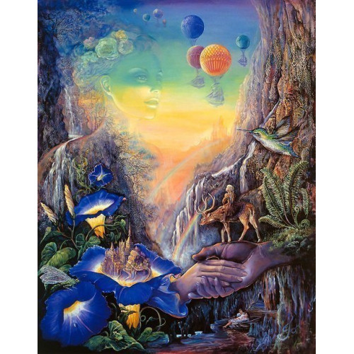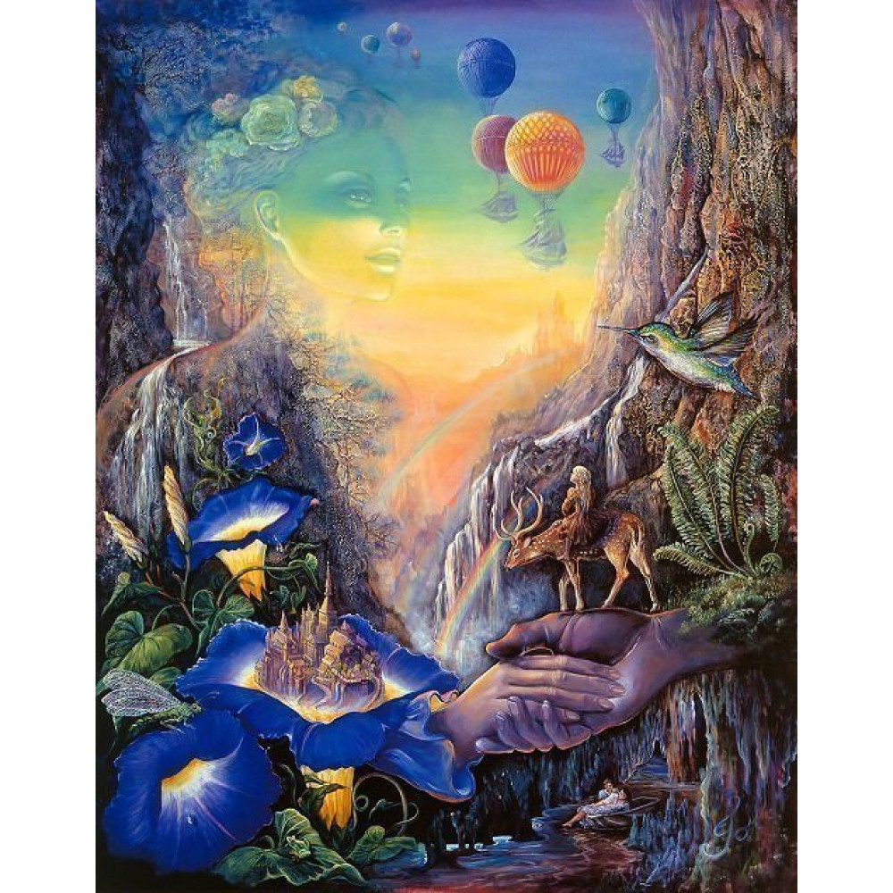 На рисунке изображен сказочный мотив, преобладает синий цвет.