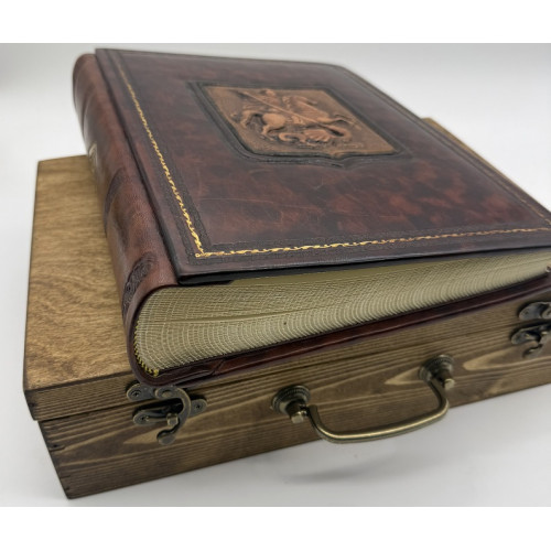 На альбоме обложке с гордостью возвышается барельеф в форме герба Москвы, выполненный из той же высококачественной кожи, что и сам альбом. Этот великолепный элемент придает альбому уникальность и делает его идеальным подарком для любителей стильных и значимых вещей. Альбом станет роскошным украшением вашего дома и символом уважения к традициям и истории.