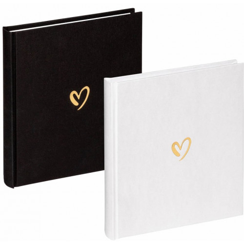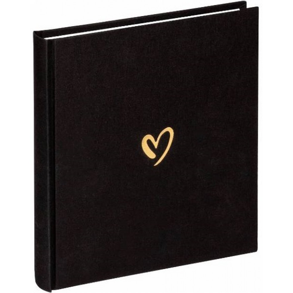 Традиционный альбом WALTHER FA-189-B Emotion (черный) в книжном переплёте с льняной обложкой, украшенной золотым тиснением в виде сердца.