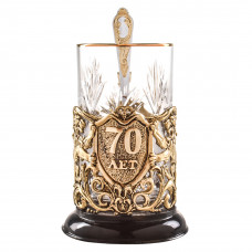 Подстаканник ручной работы С Юбилеем 70 лет в черной подарочной упаковке 13000253