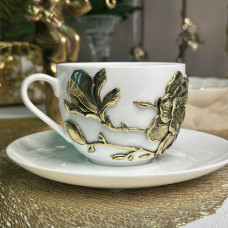 Чайная пара Магнолия латунь в черной подарочной коробке