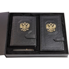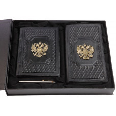 Набор "Пирамида". Штоф +2 стакана, "Герб, эмаль", в дер. шкатулке 13000844