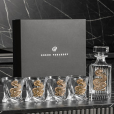 Набор 4 бокала для виски квадро со Штофом накладка "Змея", в коробке 13000928