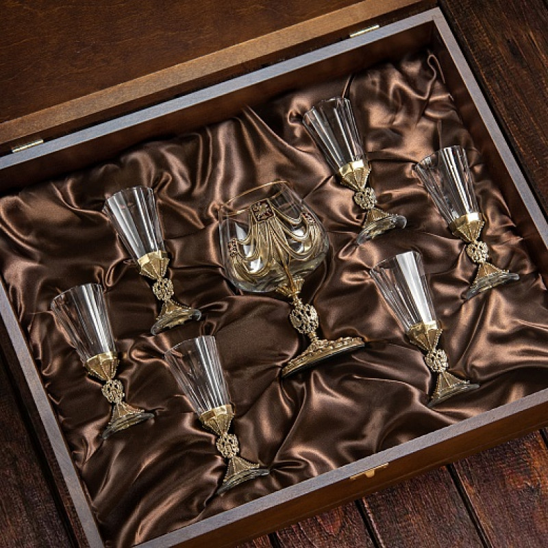 | Комплектация | Бокал для коньяка; 6 лафитников; Деревянная шкатулка |