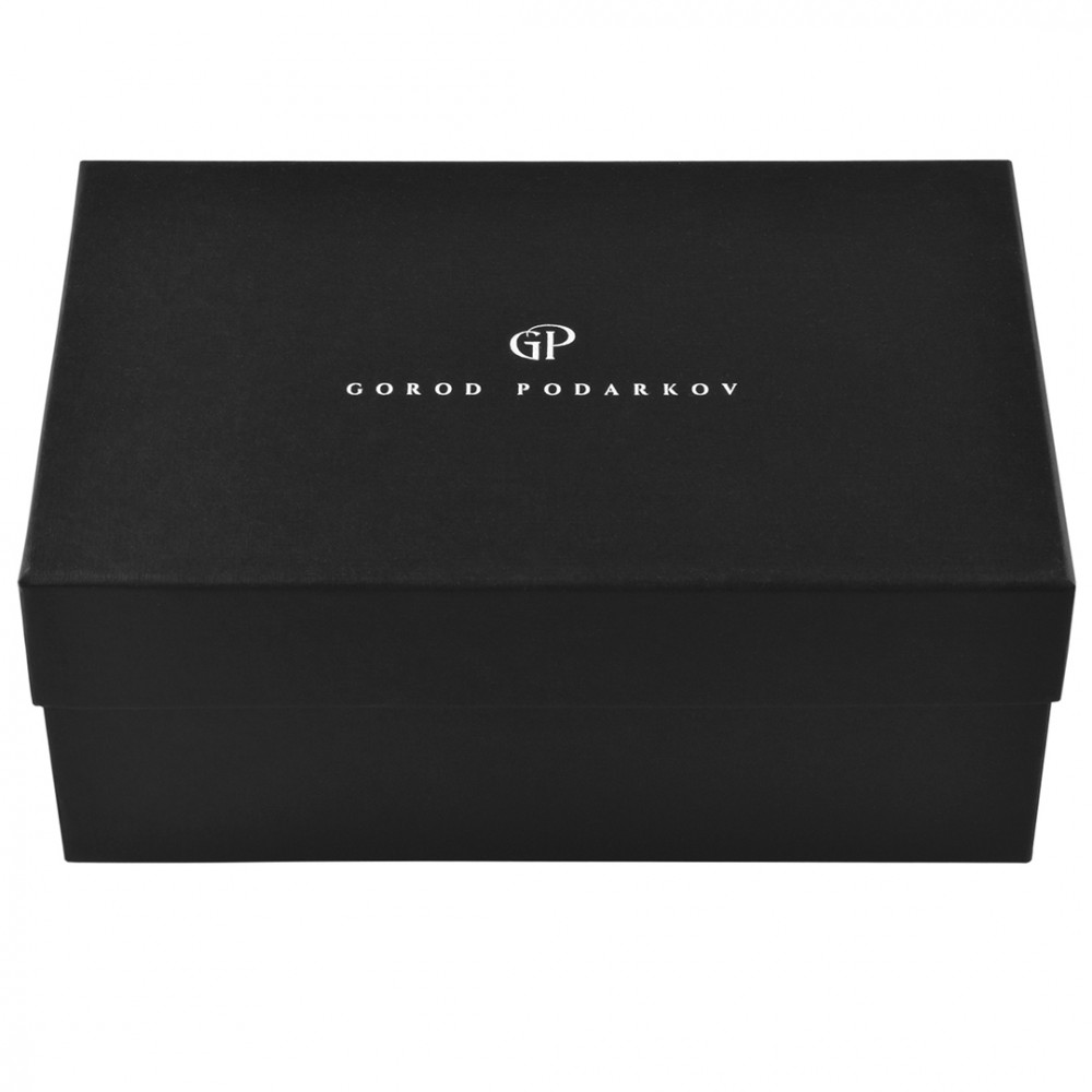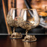 Набор включает 2 бокала для коньяка с латунным основанием "Кабан" в черной коробке из дизайнерского картона.