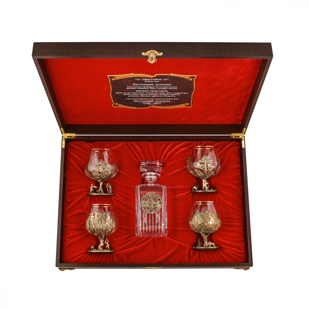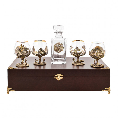 Набор бокалов для коньяка со штофом Охота в большом футляре с накладкой Настоящий мужчина 10056555