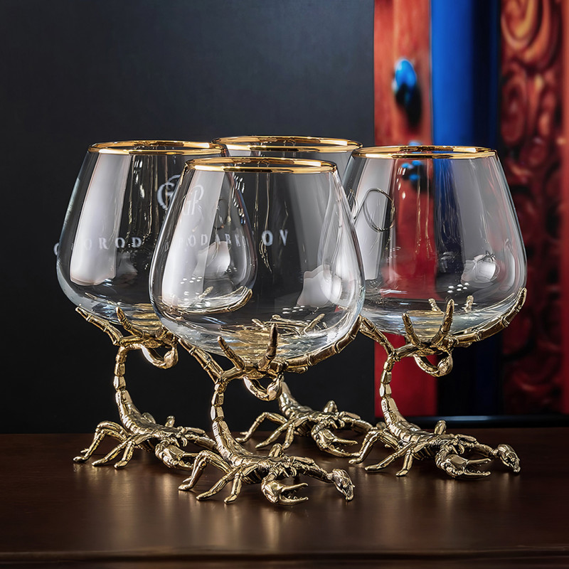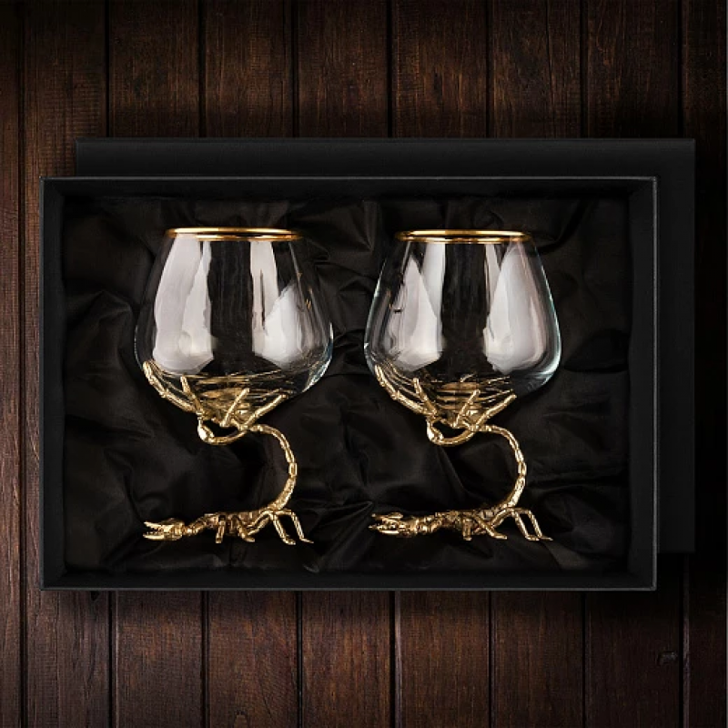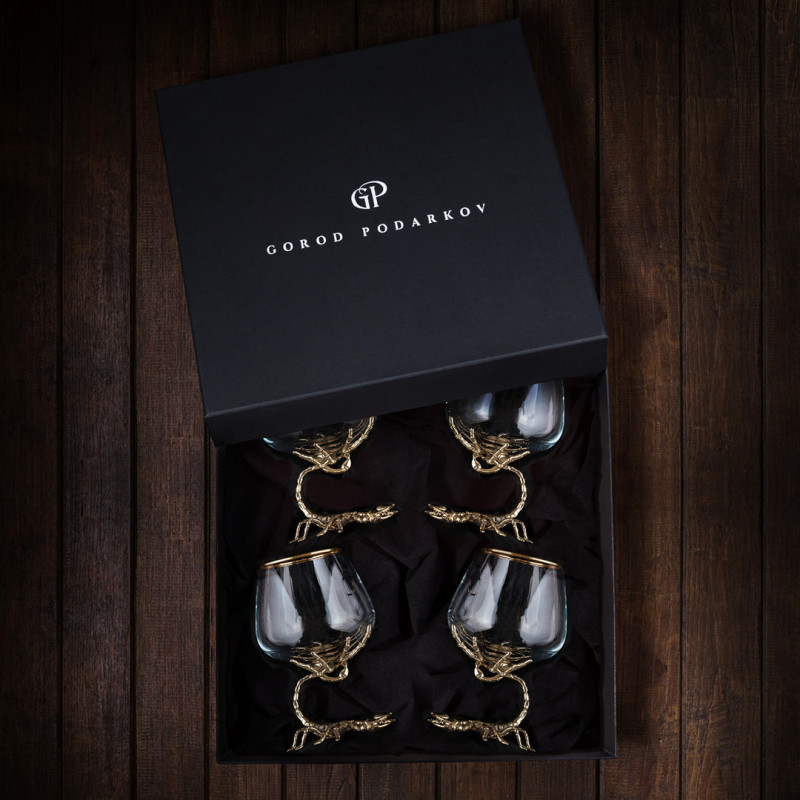 В набор входит 4 бокала для коньяка в черной подарочной упаковке
