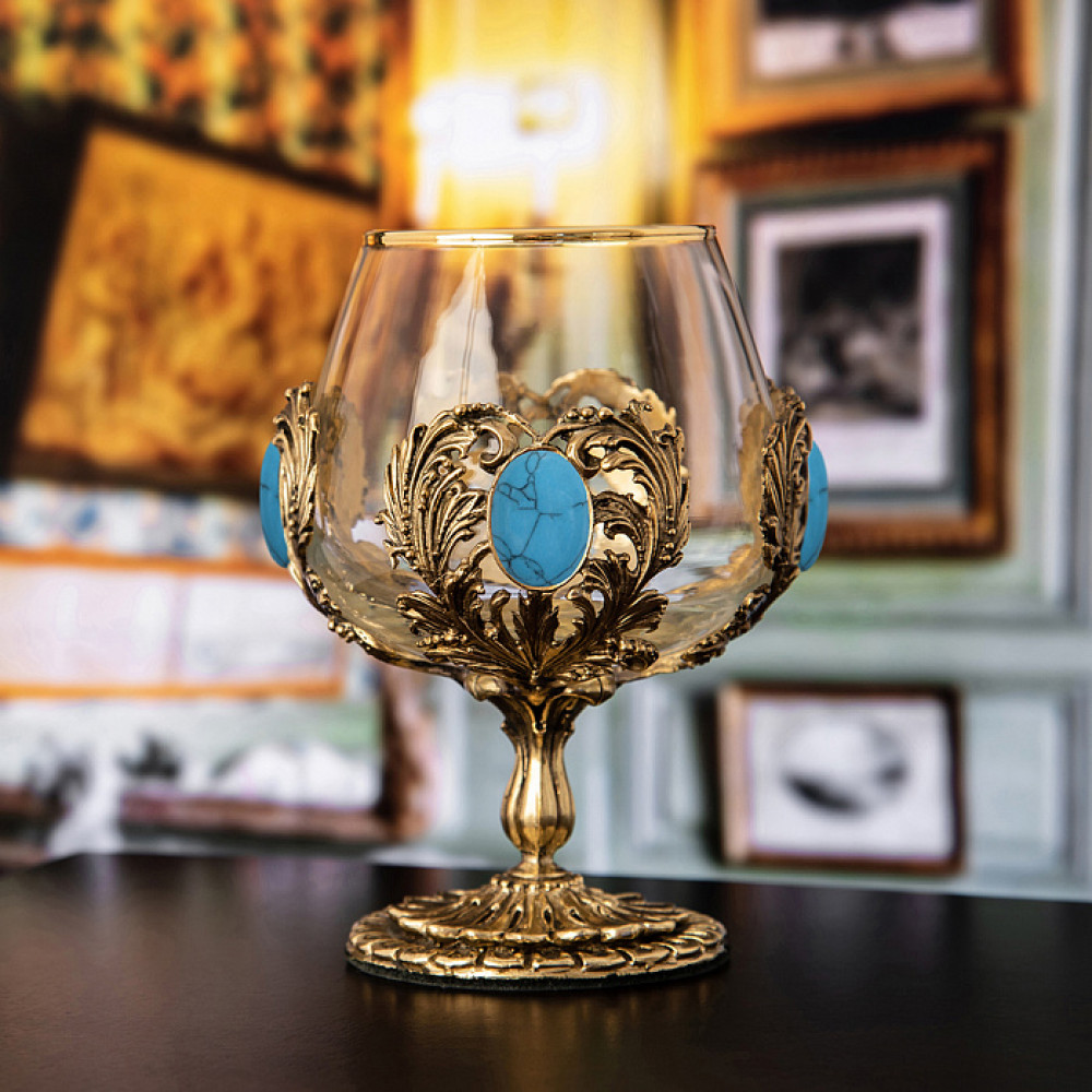 Бокал для коньяка с искусственным камнем Бирюза 420 мл в подарочной коробке 050401033