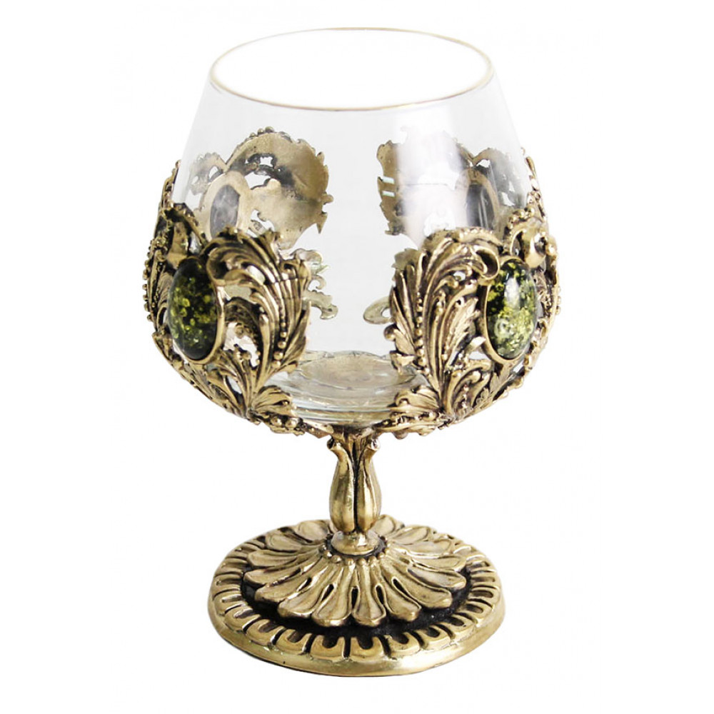 Бокал для коньяка с искусственным камнем (Янтарь зеленый) в подарочной коробке 050401036