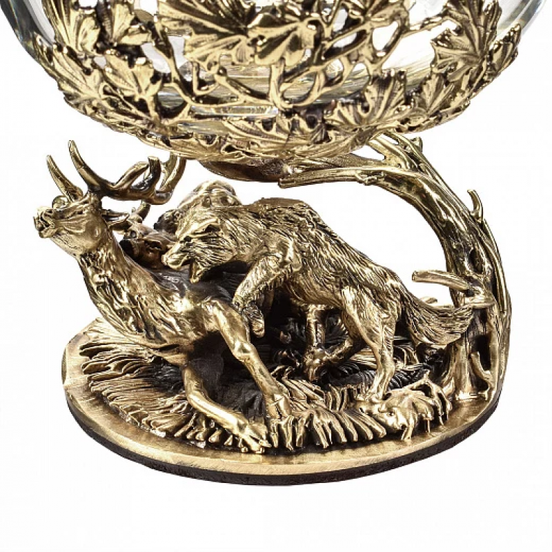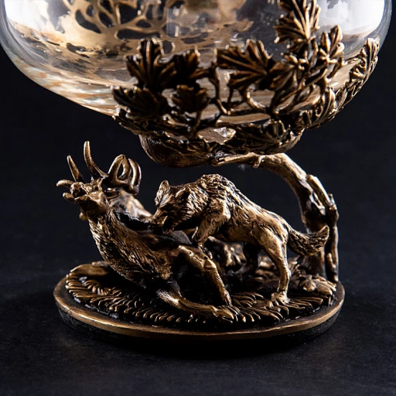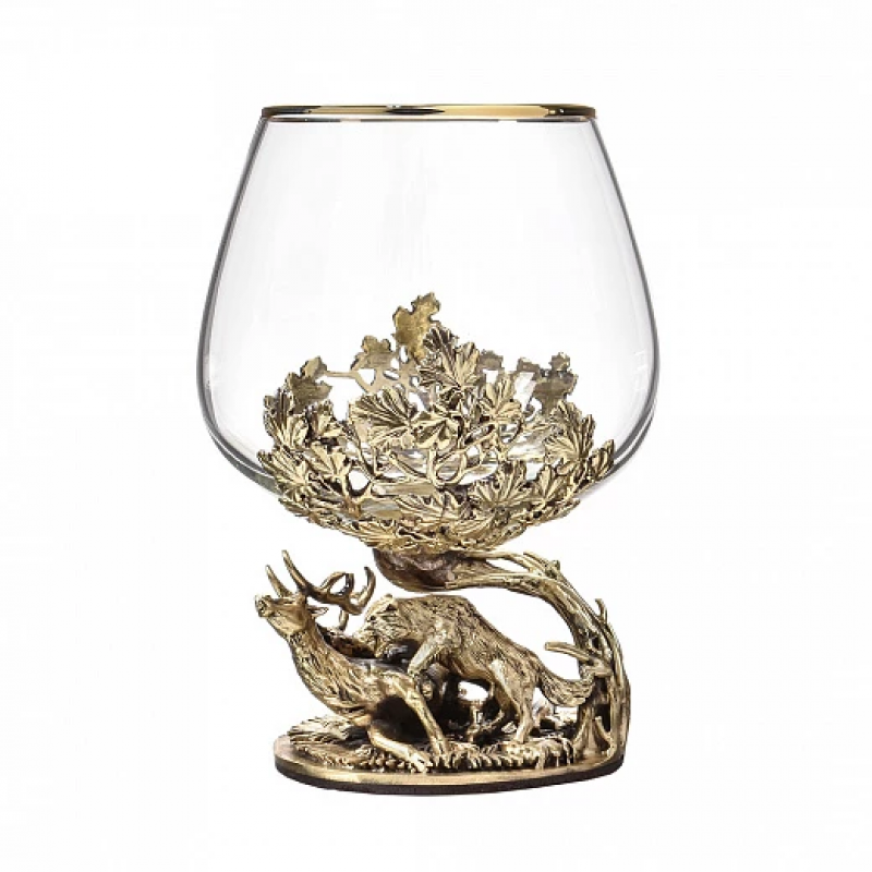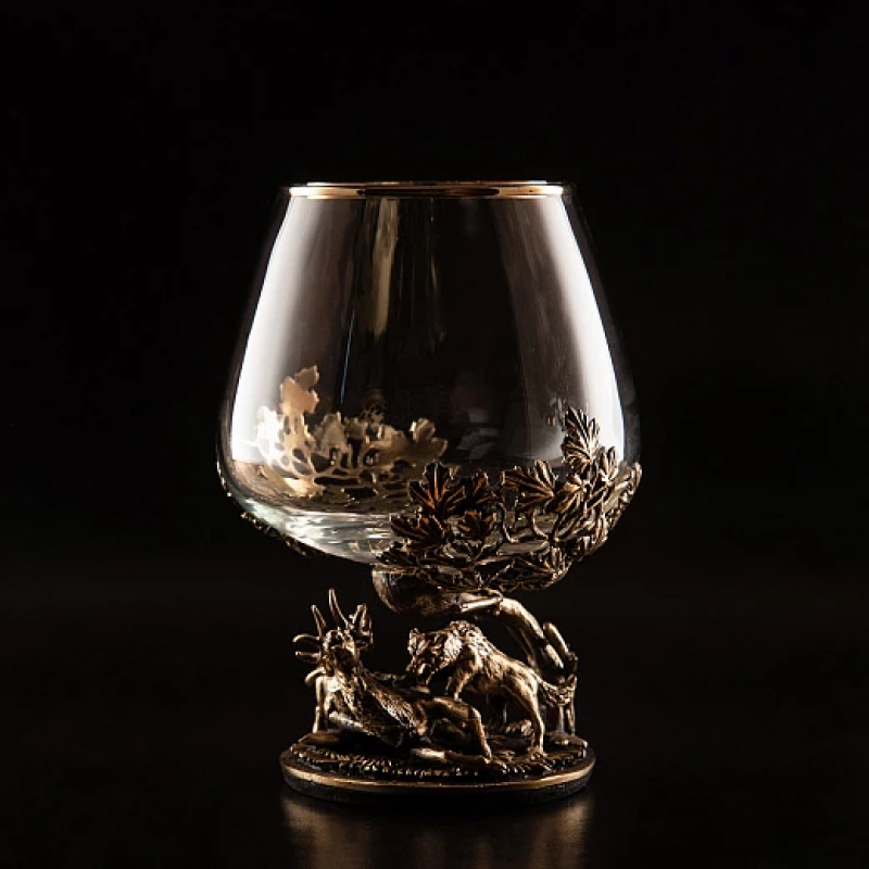 Бокал: стекло с декорированием, патинированная латунь, ручная работа.