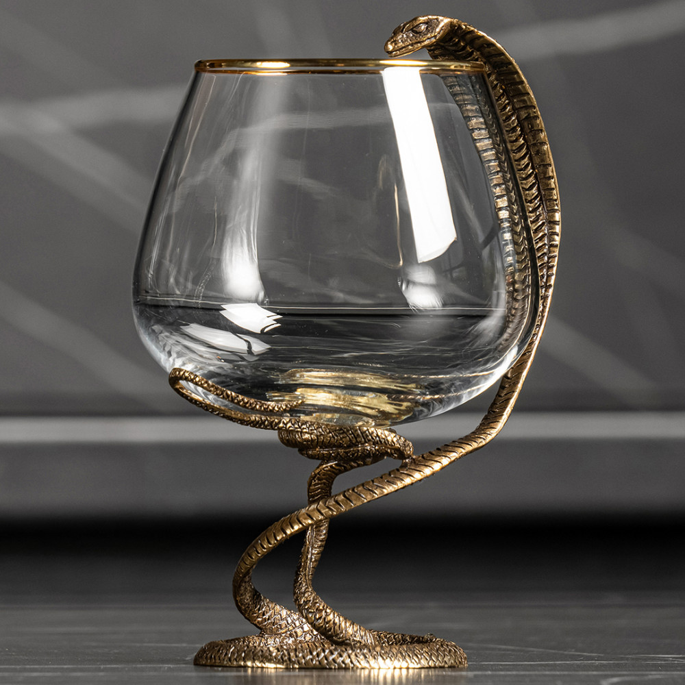 Бокал для коньяка "Змея" станет идеальным статусным подарком для ценителей напитков. Этот эксклюзивный предмет искусства поражает своей изысканной формой и утонченностью деталей. Сделано в ручную с ювелирной точностью, что придаёт ему дополнительную уникальность. Патинированная латунь обеспечивает долговечность и стильный внешний вид.