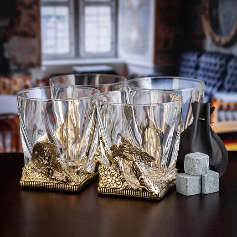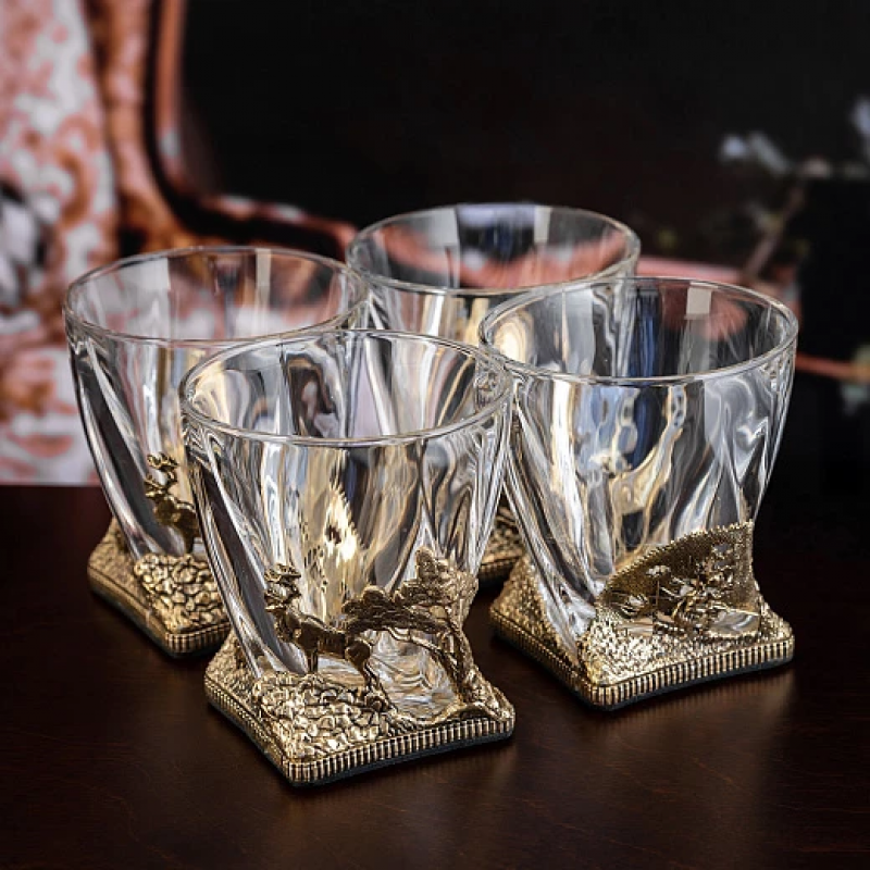 Набор из 4-х бокалов для виски ручная работа Охота на оленя 1200104