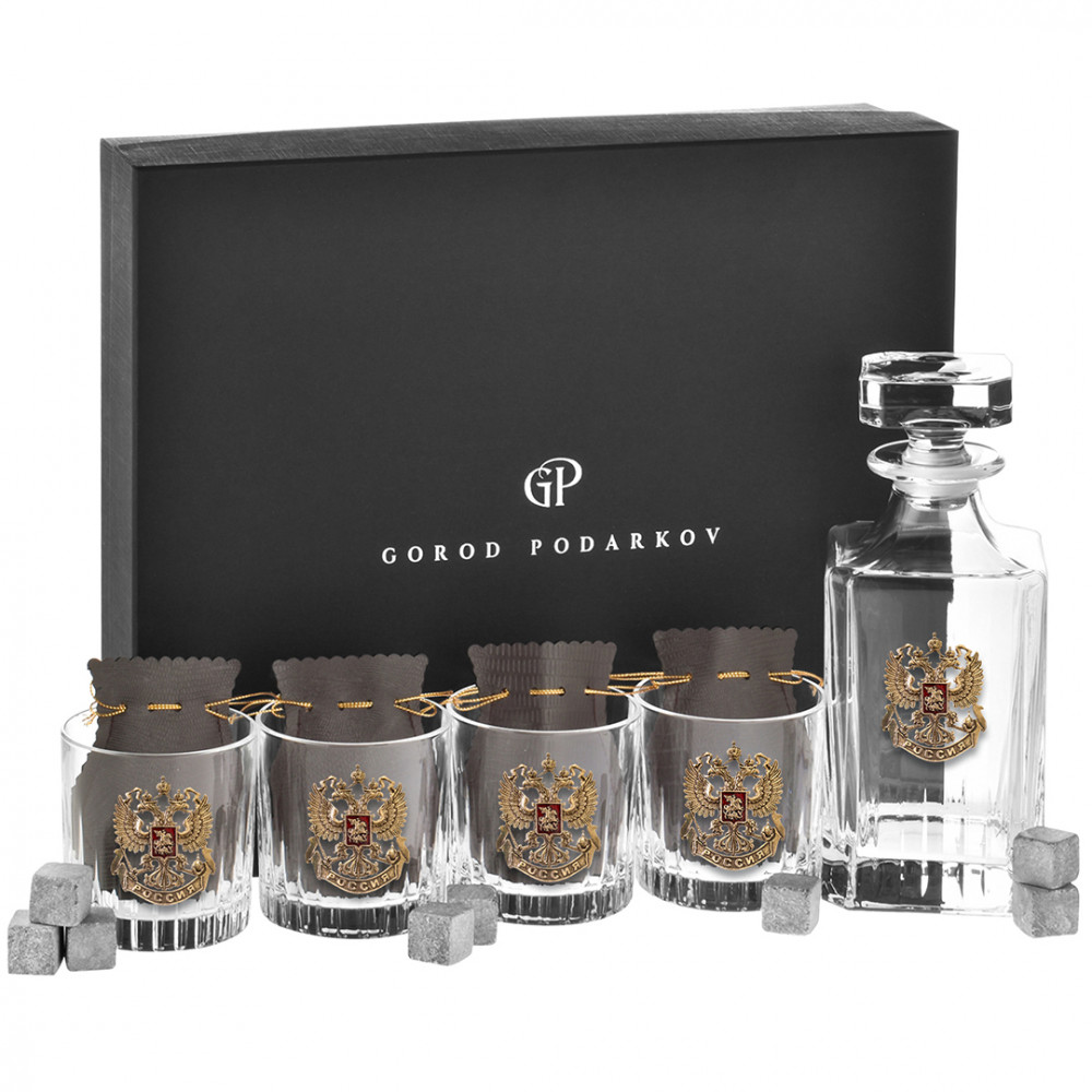 Набор Штоф и 4 бокалов для виски "TImeless", "Герб, эмаль" 13000624