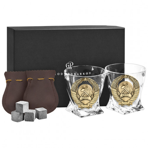 Набор 2 бокала для виски "Квадро", накл."Герб СССР" 13000709
