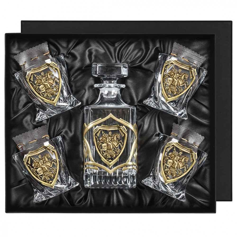 Набор "Великая Россия": 4 бок. для виски "Квадро", Штоф "TImeless", накл. "Георгий Поб" 13000731