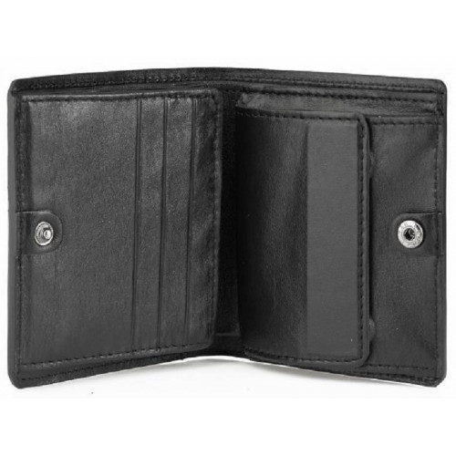 | Комплектация: | внутри 2 отделения для бумажных купюр, карман с клапаном на потайных магнитах для монет, два боковых накладных кармана (один из них с тремя прорезными карманами для карточек), откидной карман с прорезными карманами для трёх карточек и для фото. |