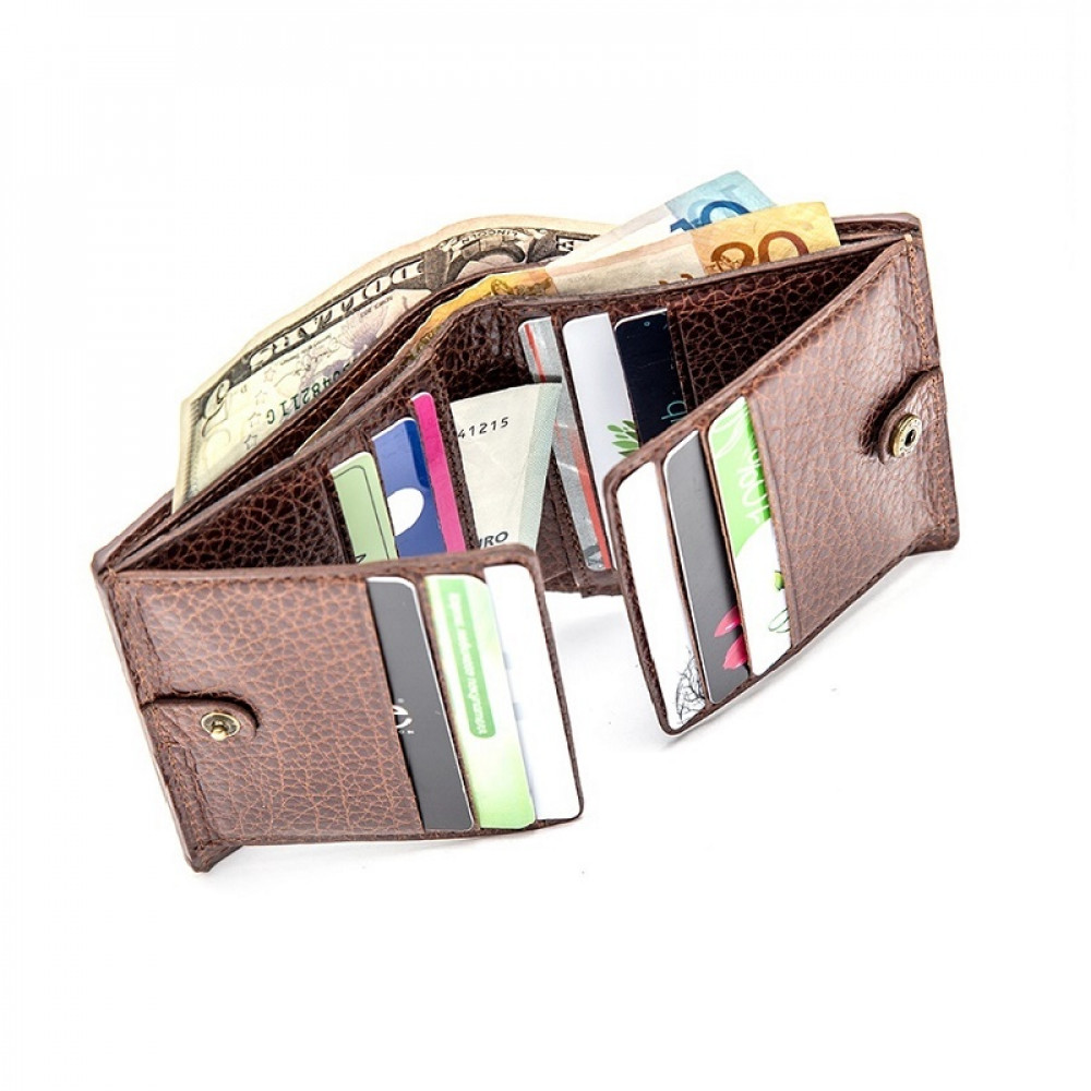 | Комплектация: | 2 отделения для купюр, 12 секторов для кредитных и дисконтных карт, 2 скрытых кармана для бумаг и полупрозрачное отделение |