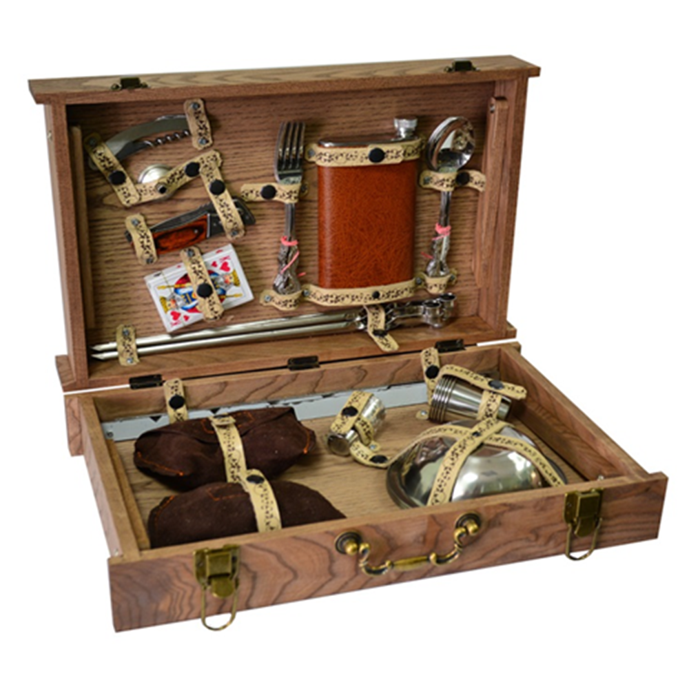 | Комплектация: | шампура - 5 шт, нож складной - 1 шт, вилка - 5 шт, штопор - 1 шт, ложка - 5 шт, воронка - 1 шт, фляжка - 1шт, мангал - 1 шт, карты игральные - 1 шт, шахматы, комплект - 1 шт, шашки, комплект - 1 шт, тарелки - 5 шт, стопка - 5 шт, стакан - 5 шт |