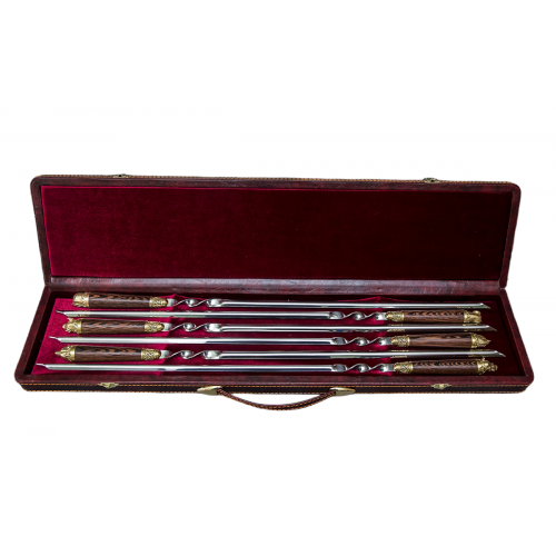 | Особенности: | Шампура изготовлены из высококачественной пищевой нержавеющей стали. Рукоятки из дерева граб с наконечниками ручной работы из латуни в виде фигурок разных зверей |
