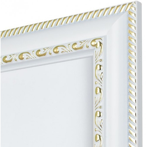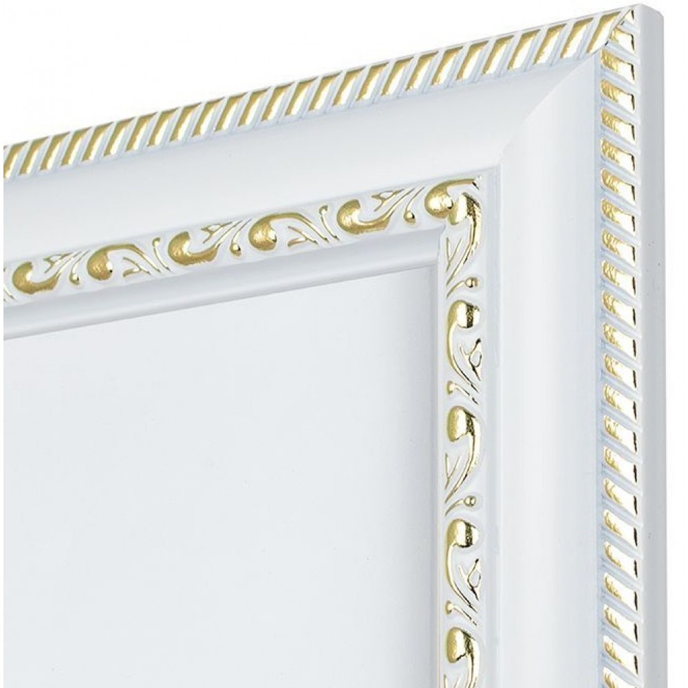 Материал багета: пластикВставка рамки: пластик или стеклоПодвес у рамки: естьЦвет: белый с золотомЗадник у рамки: оргалитШирина - Высота багета, 2.8 х 1.3Размер фотографии: 50-70Только стандартный размер!