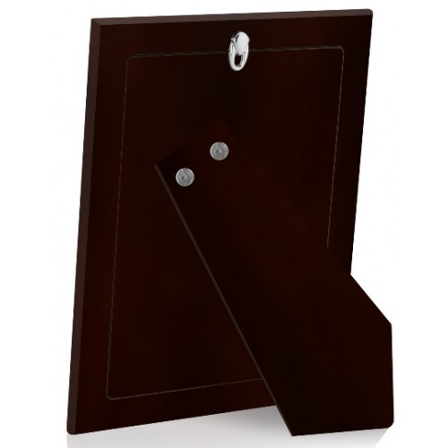 Рамка упакована в картонную коробку, прилагается бумажный сертификат..У рамки бархатная спинка и ножка для установки на поверхность.