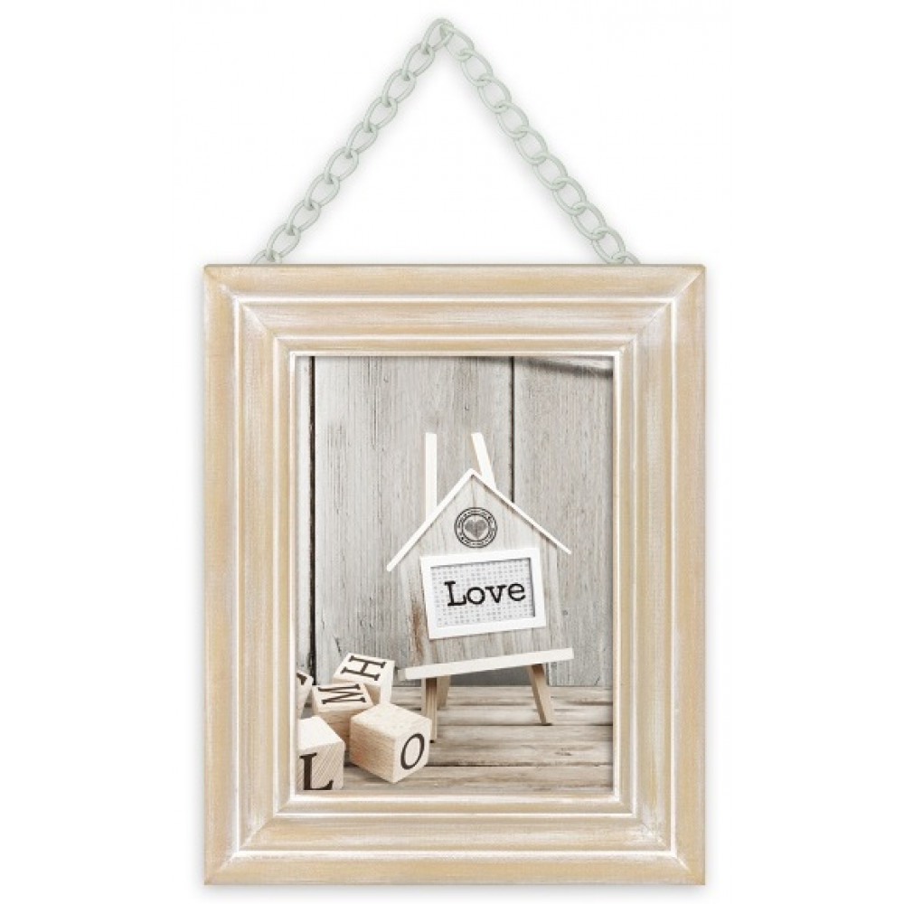 Деревянная фоторамка ZEP Rivoli Natural выполнена в винтажном стиле. Украшена металлической цепью для подвешивания на стене. Размещение настольное настенное. Формат:15x20 Цвет: натуральный. Упакована в коробку